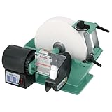 This superb grinder is an absolute MUST for any shop metal or woodworking. Large 10" x 2" white stone turns at 70 RPM and runs in a water bath. Simply indispensable for sharpening knives, chisels, etc., while still keeping temper on the edges. The smaller stone is 4 1/2" x 3/4" and spins at 3450 RPM This stone is excellent for general purpose grinding of drill bits, lathe tool bits, etc. Motor is 1/4 HP, 110V. Quick-setting tool rest on large stone is easy and fast to adjust to proper angles. The smaller, fast stone comes with eyeshield and tool rest. Worm gear drive mechanism operates both stones at the same time. Weighs only 32 lbs.